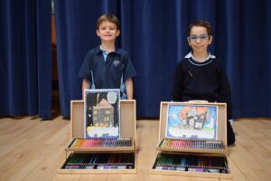 Parsons Green Prep had two winners in local estate agent John D Wood’s Haunted House art competition for Halloween. First prize from the Parsons Green Office went to O in Year 4 and first prize from the Fulham Broadway branch went to A in Year 3. They each received a lovely engraved art case full of pens and pencils in assembly. Well done to both of you and all the other artists who took part and thank you to John D Wood. Terrifyingly good work!